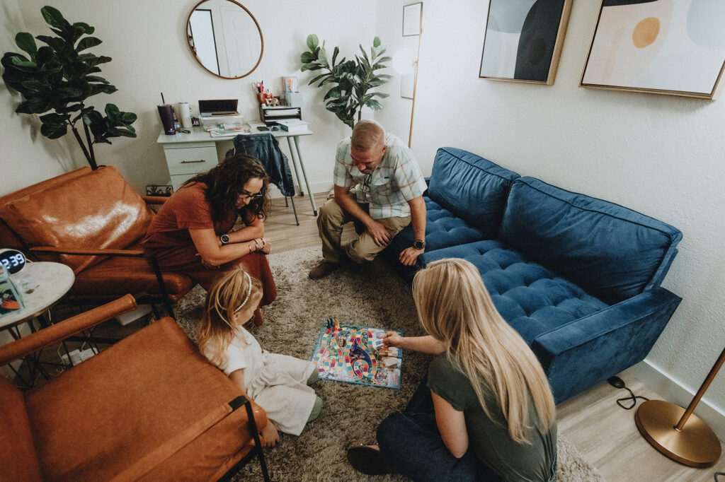 Two people seated on a couch during a therapy session at Soul Space in Tucson