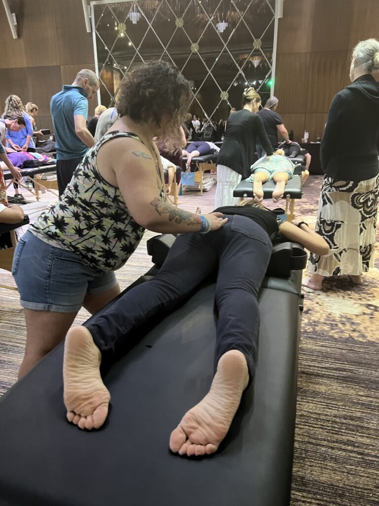 No. Spinal Flow is not chiropractic adjustment and it isn’t massage therapy. It’s a light-touch modality focused on nervous system regulation and the body’s natural ability to reorganize and release stored stress.