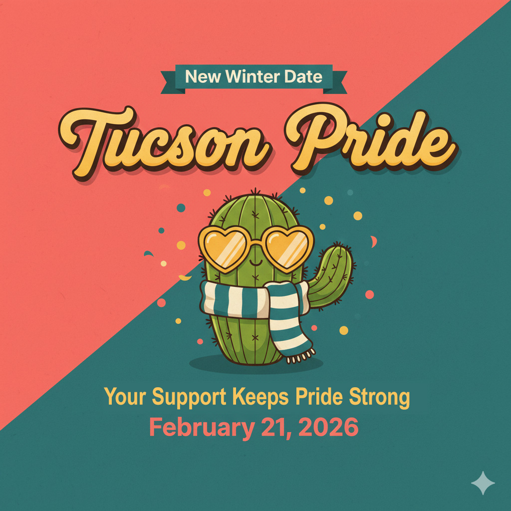 If you saw our earlier update about Tucson Pride moving to November, we have a new—and important—change to share. Tucson Pride has announced the Parade and Festival will shift from November 22, 2025 to February 21, 2026. Smaller Pride-related events are still expected in November to keep our community connected, but the full parade and festival will now happen in February.